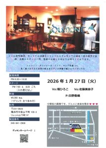 | 出演者 | 歌:佐藤美奈子 ピアノ:金岩知代 共演希望のお客様 |